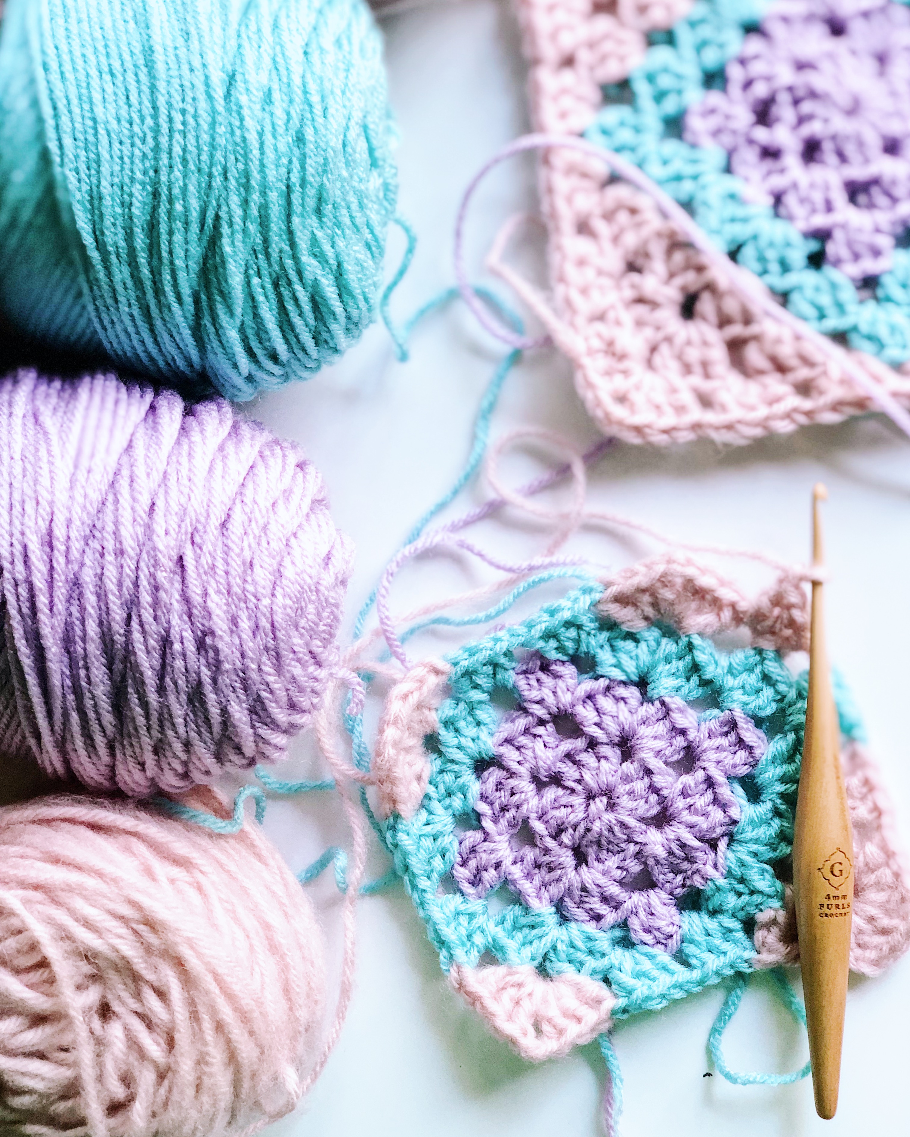 – Granny square is worked from the center out in joined rounds with RS facing at all times.