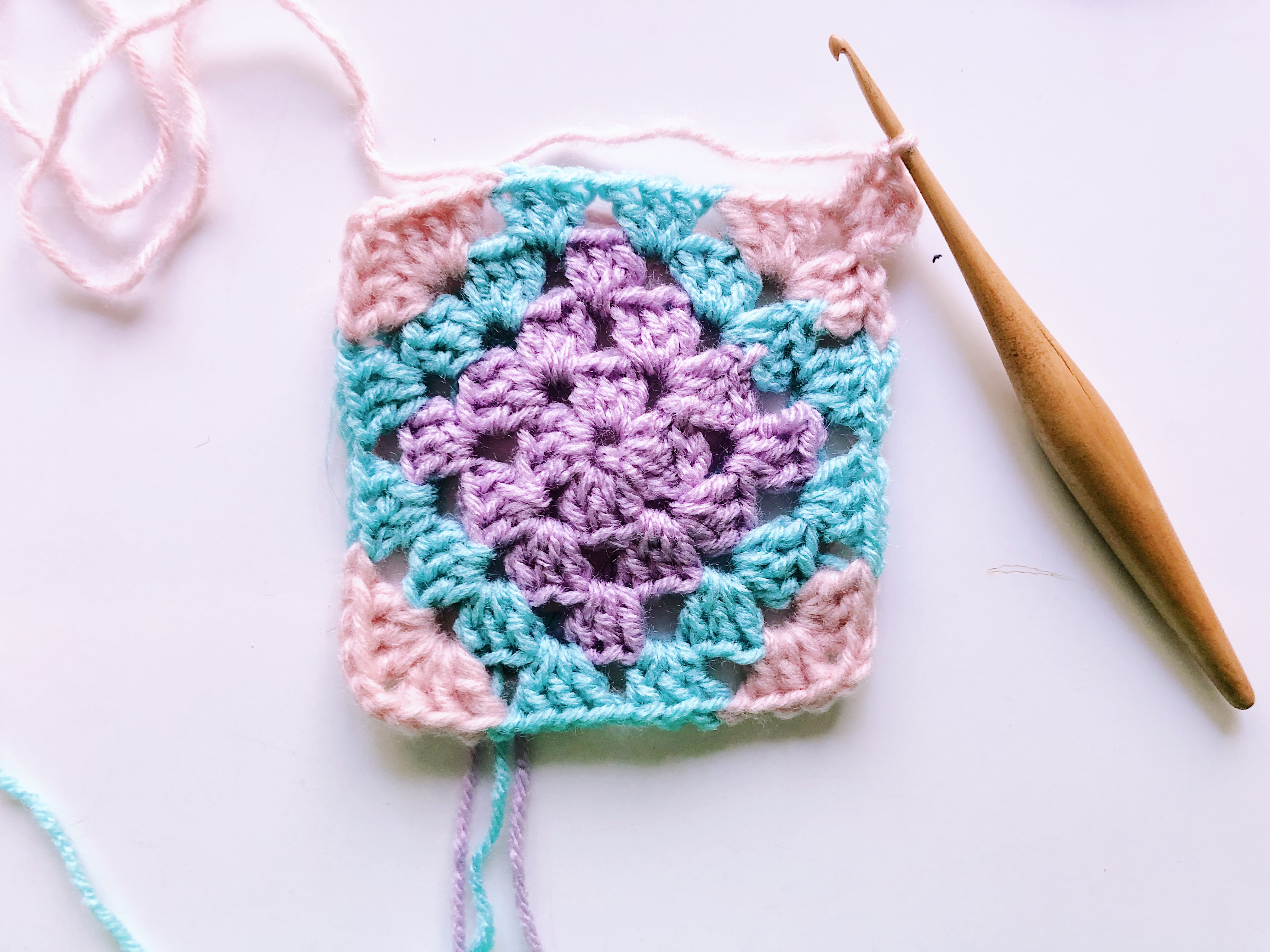 – Square uses color changes, to change colors, work until last two loops on hook, join new color, and finish stitch as needed.