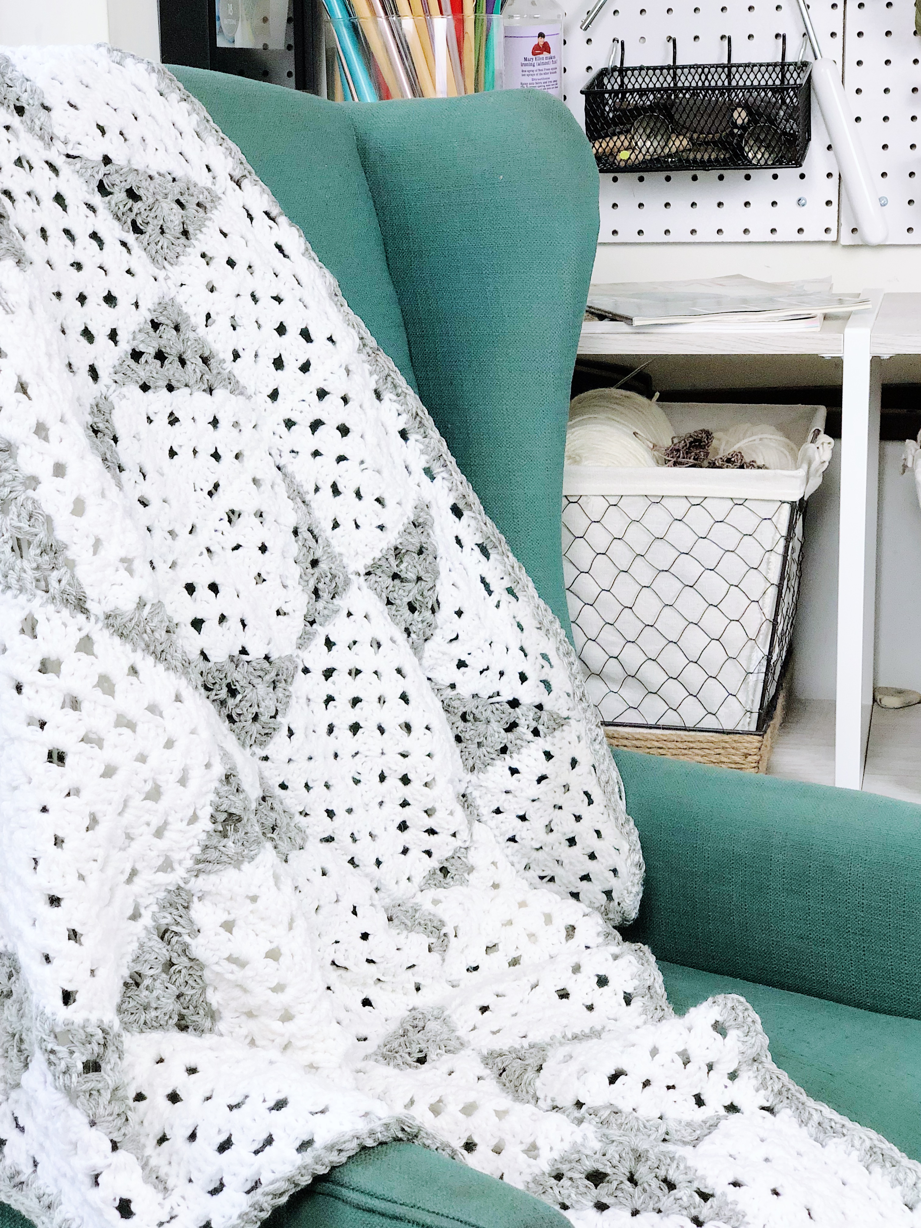 The Modern Farmhouse Granny Afghan is a simple and quick to stitch modern granny square afghan perfect for any room in your home. It’s easy as pie to make and I have a full pattern and tutorial available for you below. As well as all the supply links so you can stock up on your fav Joann products.