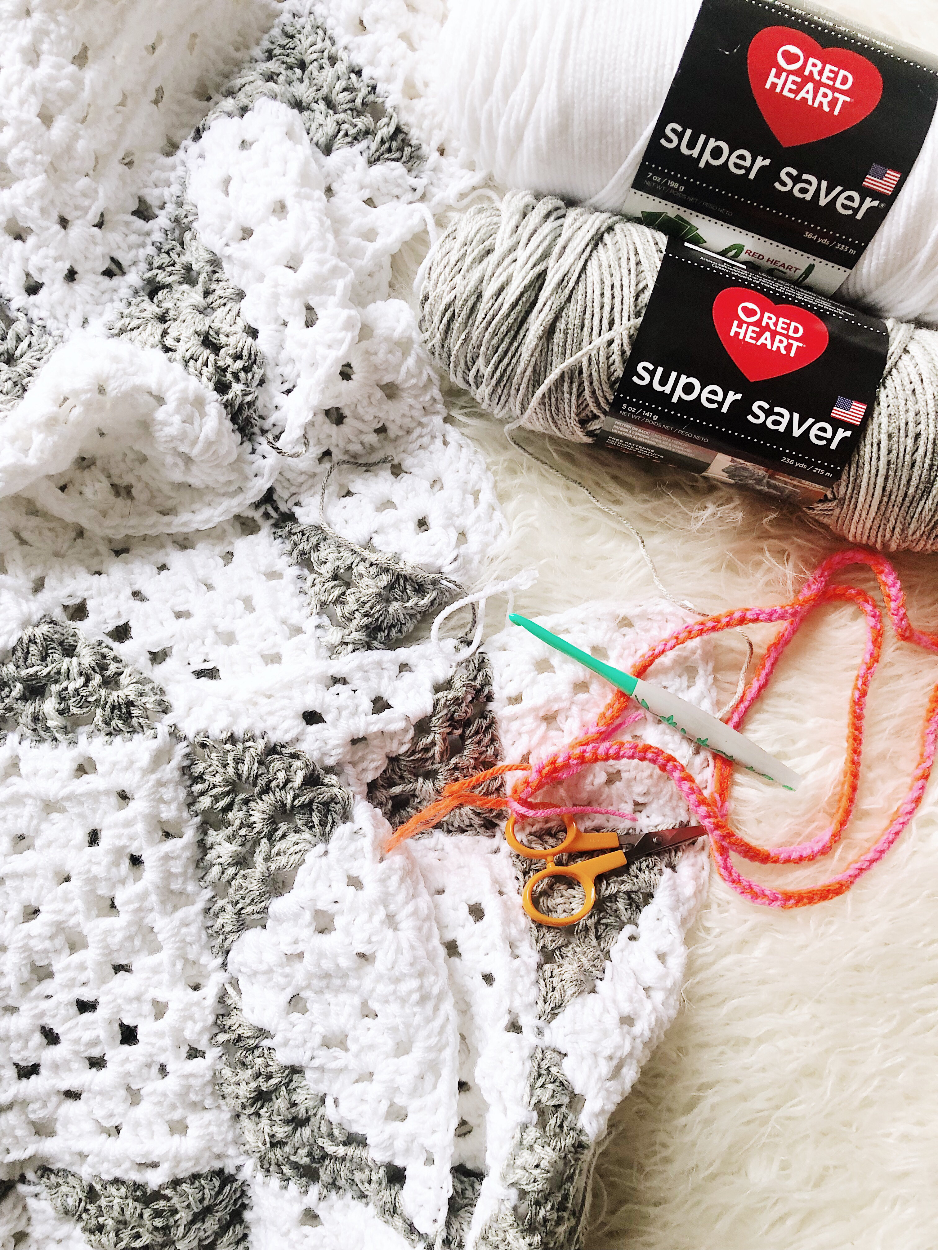 February was all about travelling for me. Between California and Texas and Illinois…I was all over the country teaching crochet. With such a rigorous schedule, I knew that I needed a project that I could take with me and not have to think about too much. I also really wanted my first project to use Red Heart Super Saver, one of my favorite yarns ever.