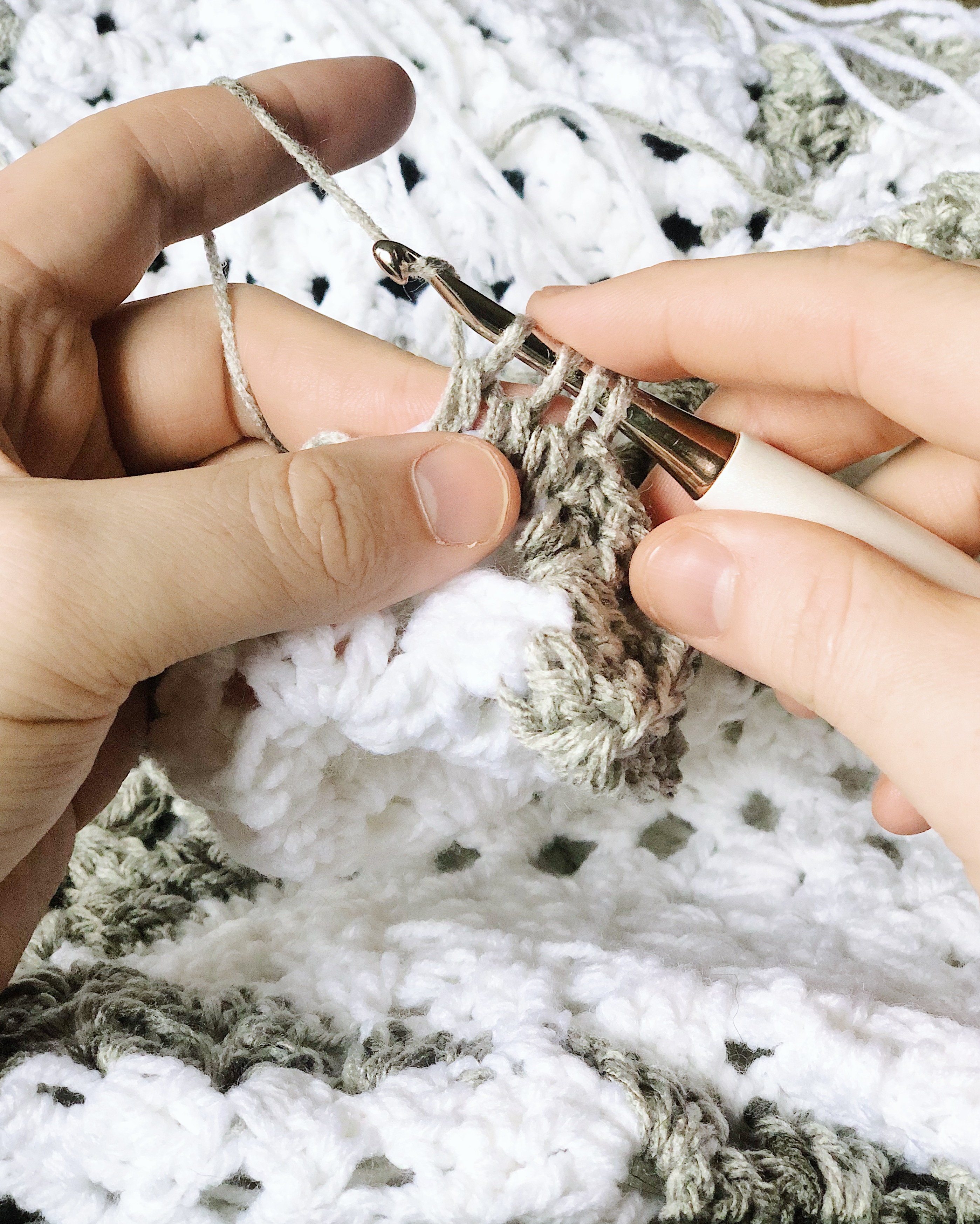 A few plane rides later and a couple of layovers – the afghan was done and packed in my carry on! Once I was home, I was able to whip this beauty up in just a day. Adding the border and weaving in all the ends.