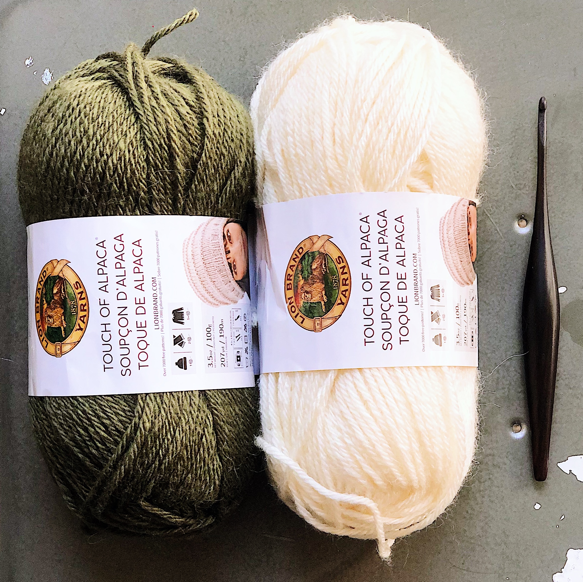 Today, we’re going to stitch up these slipper socks in a luxurious yarn, Lion Brand Touch of Alpaca. That little touch is just SO fancy. LOL. I really love this yarn. The acrylic means it’ll be perfect for slippers because it’ll wear really well. The touch of alpaca is just so soft. This yarn is amazing and with all these amazing colors…you can’t go wrong.