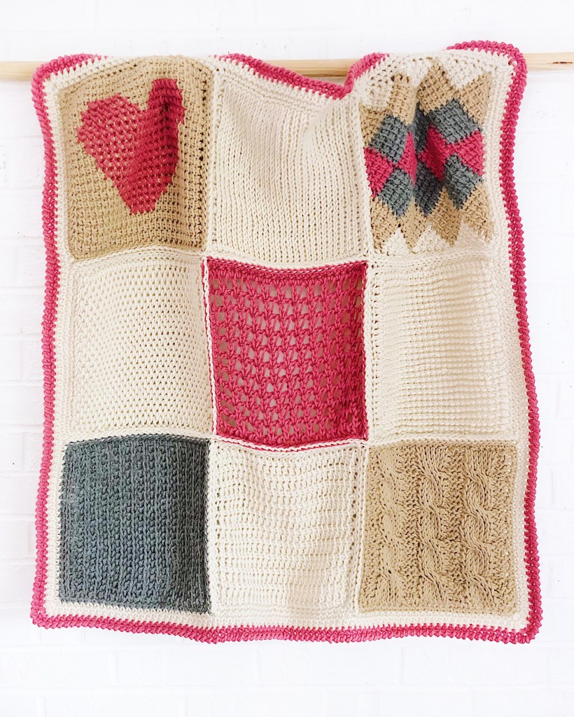 The Tunisian Delight Sampler is the culmination of a lot of knowledge and techniques. It features beginner stitches, easy stitches, and even a few more challenging techniques!