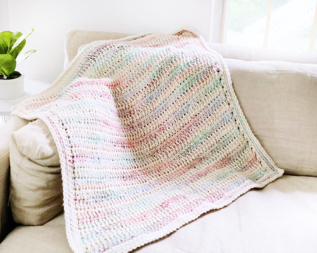 A few months back I released one of my very favorite blanket designs, The Snowball Throw! It used tunisian double stitch to create a graphic and bold colorwork pattern with just three solid color yarns. To be honest, as soon as I finished that version…I couldn’t wait to see more of what this stitch could do!