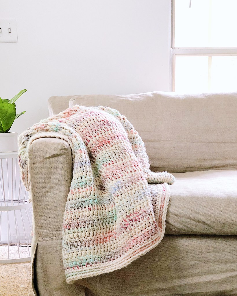This afghan is that it is fully customizable. You’ll have to change your hook size but that’s about it! I go over this in the video tutorial but here’s a quick overview:
