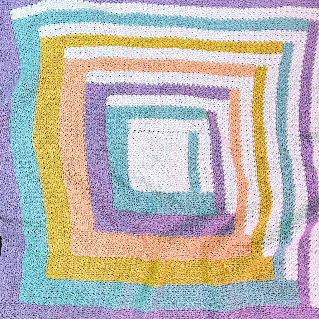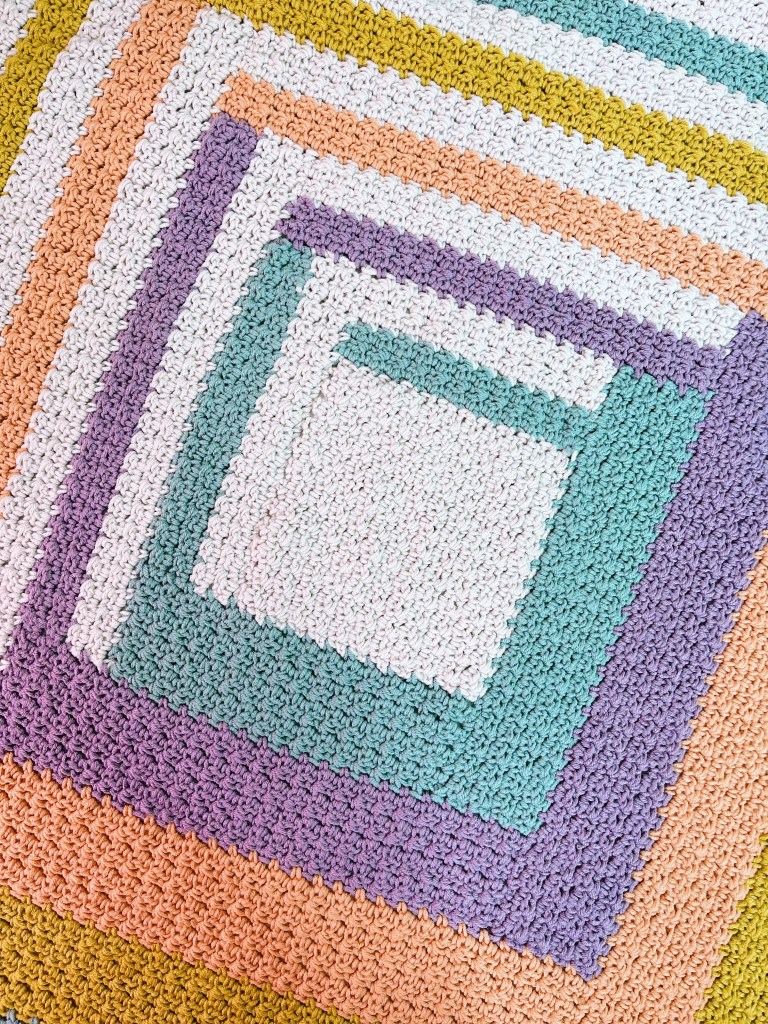 So, let’s talk a little about construction. If you’ve never crocheted a log cabin blanket, it’s actually pretty easy and it creates a really cool pattern without much work at all.