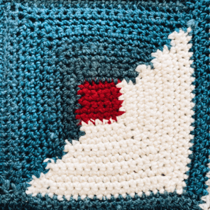 - Create the red center: Crochet a small red square using single crochet stitches.